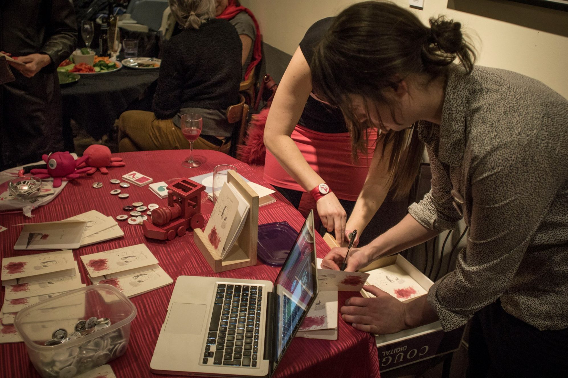 Pour le sixième numéro du fanzine Lapin Lièvre, Magali Baribeau-Marchand a collaboré avec le collectif Les Poulpes afin de livrer un récit aux contours nomades qui relate poétiquement leur projet CONVOI, périple ferroviaire, tentaculaire, performatif et mobile. Voyageuses curieuses et engagées, les Poulpes ont sillonné le Québec, les Maritimes et l’Ontario en train, en disséminant des parcelles d’art sur le territoire, en allant à la rencontre des gens.