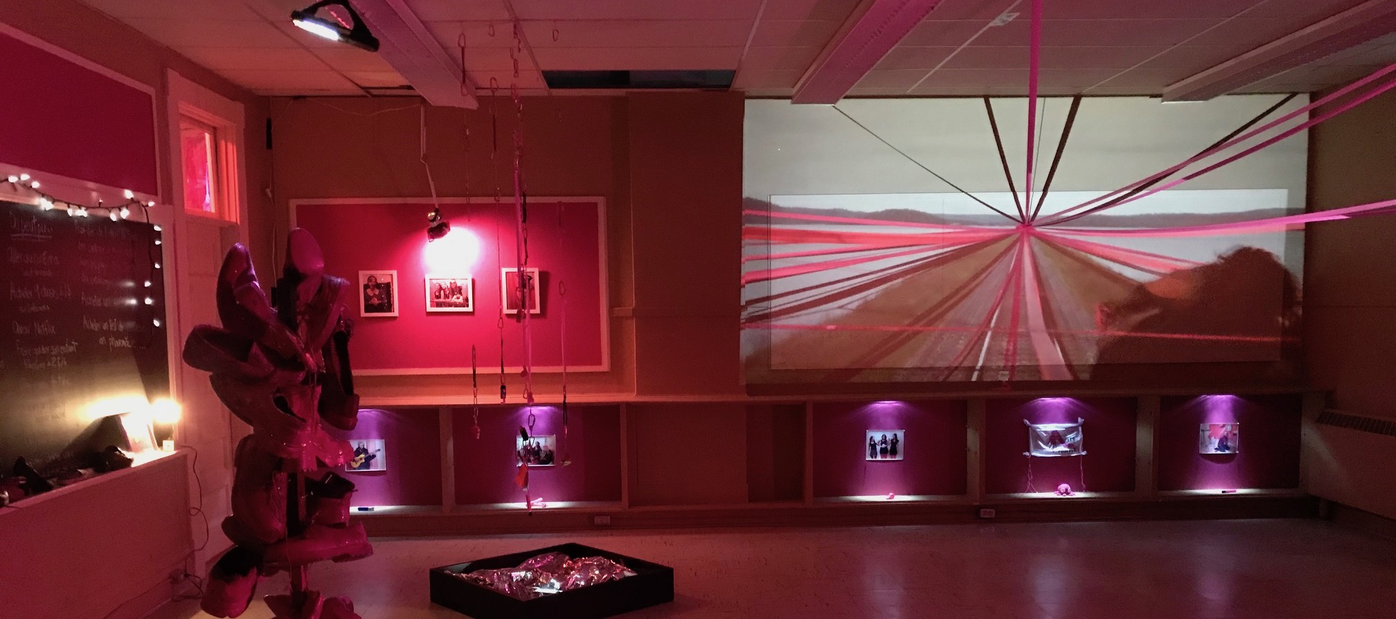 À qui? La question, clin d’oeil au mot « territoire » en Anishinaabemowin, confronte le spectateur sur sa relation avec l’espace qu’il occupe, et invite à redéfinir la notion de vivre-ensemble à la lumière des enjeux contemporains liés au partage de la terre.